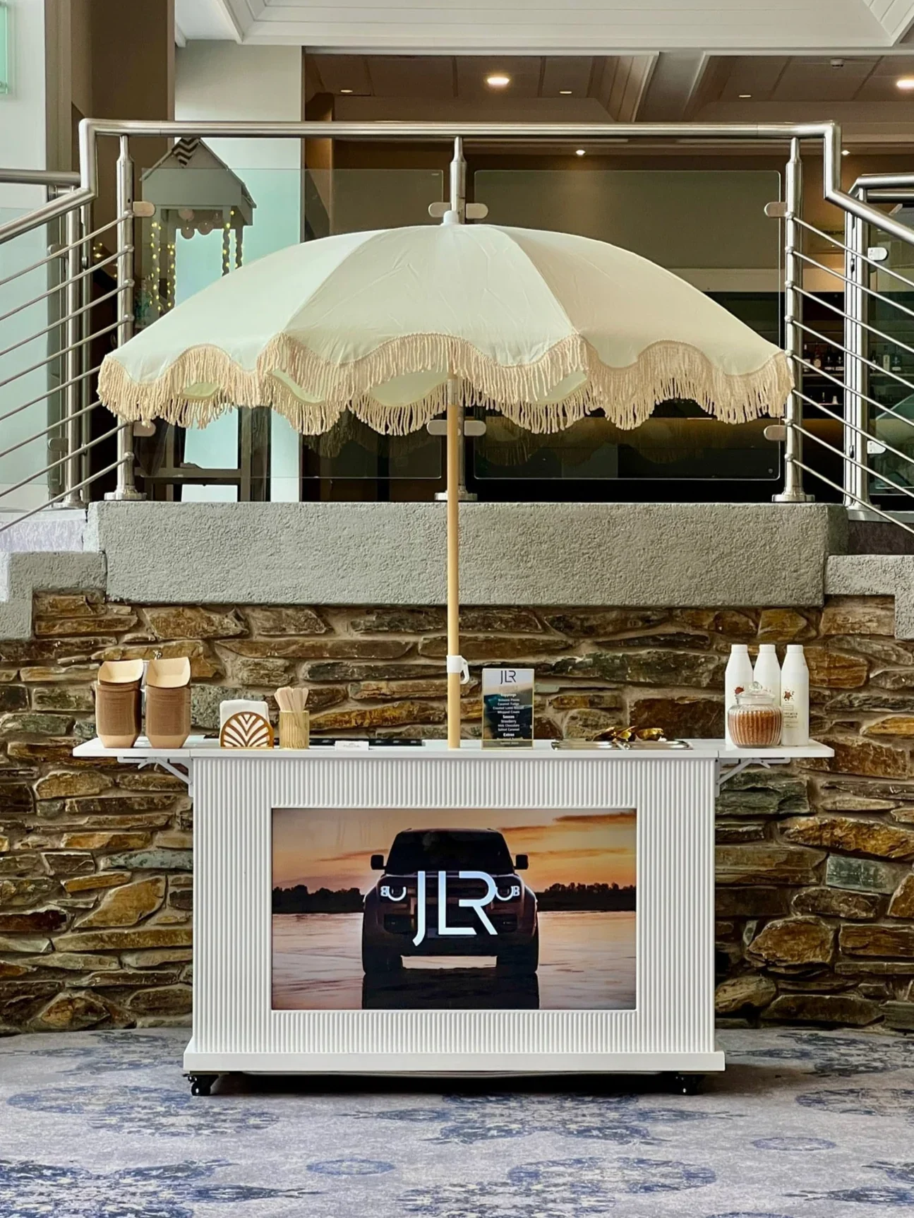 Not all services are the same. Some options are provided with a mobile cart, while others are presented as a beautifully styled station or table. This will be clearly confirmed during your booking based on your selected service.